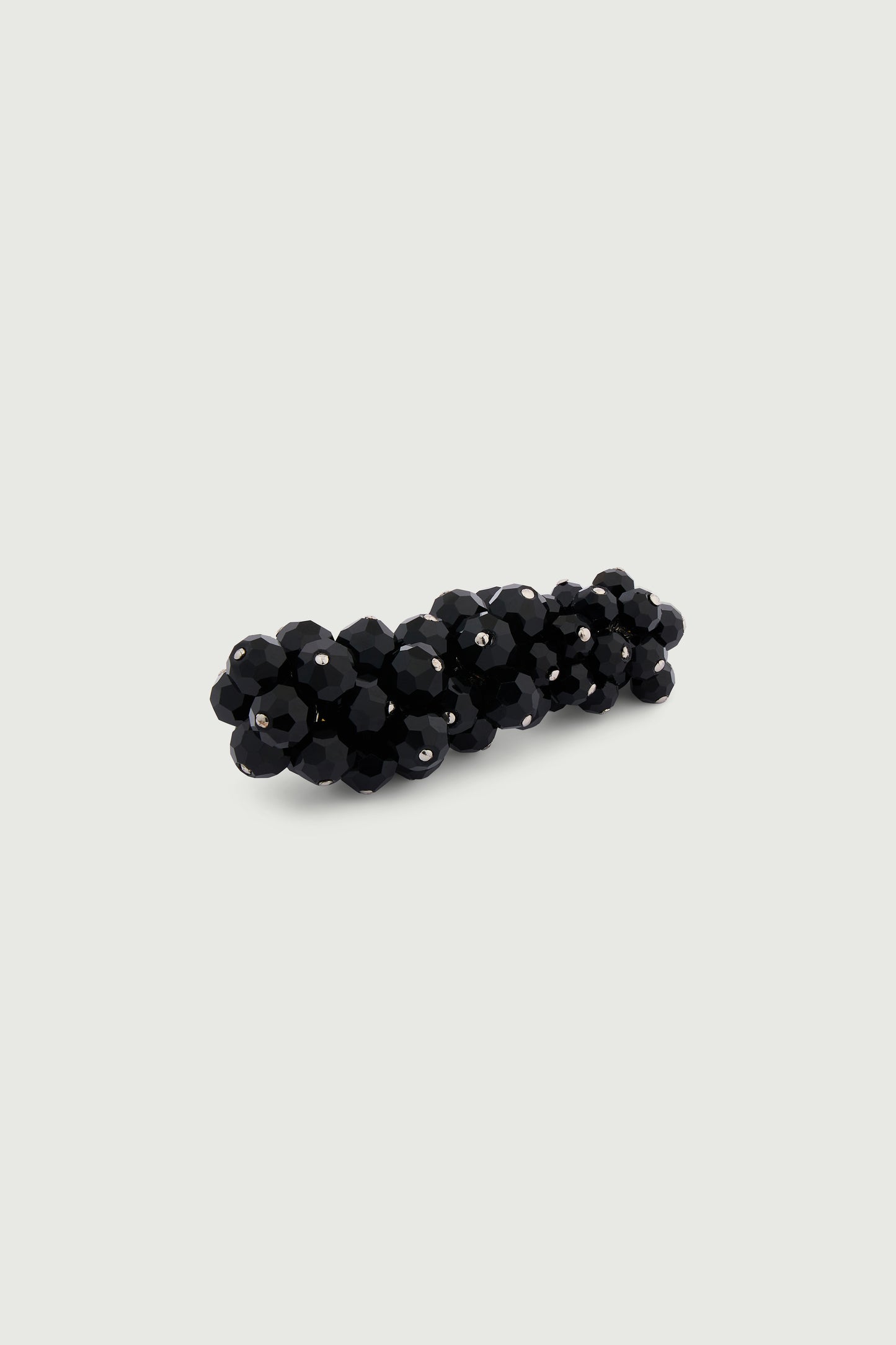 MARY is a brooch made of black faceted glass beads reminiscent of a cluster idea. It can be worn in a variety of ways, on the collar of a shirt or on the breast pocket of a blazer, and will give your silhouettes a distinctive touch.