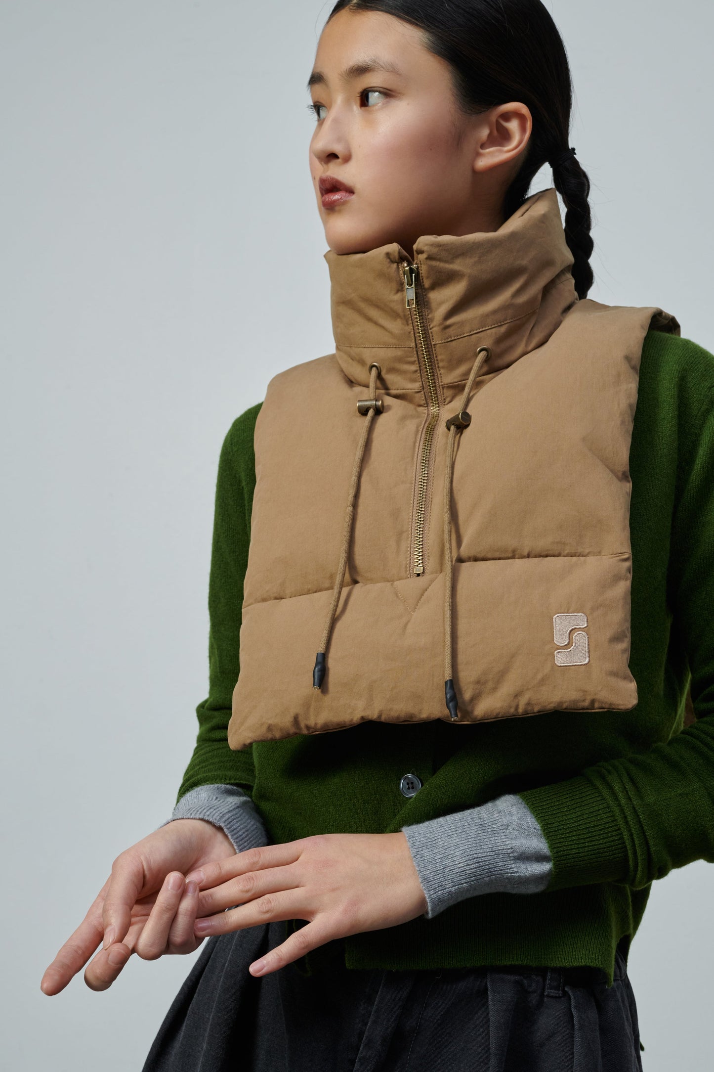 Water-repellent cotton padded collar beige