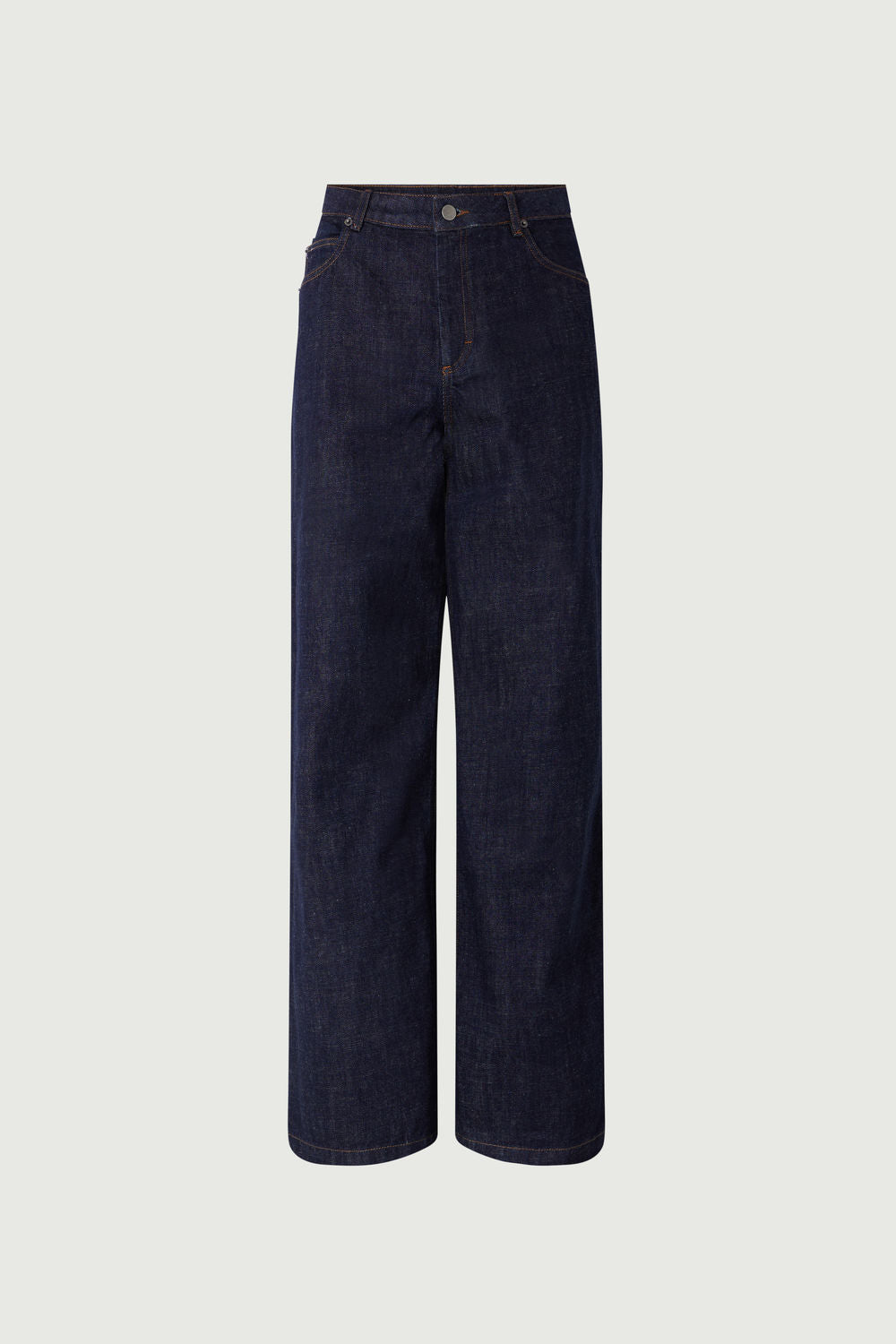- Straight cut, mid-rise waist