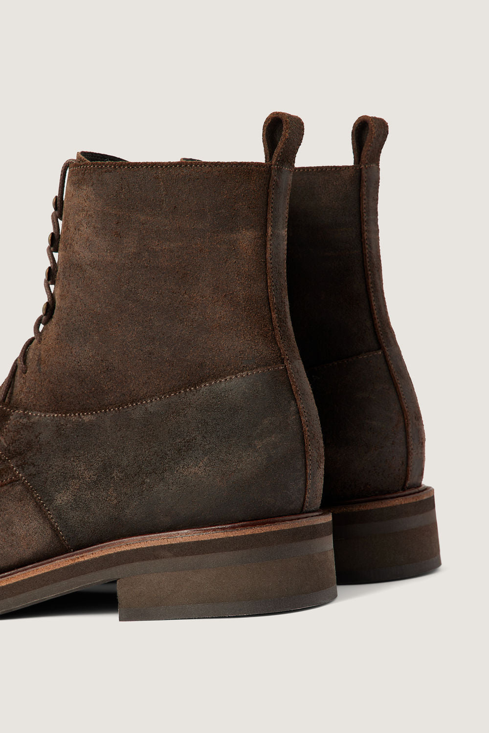 RALPH est une bottine à lacets inspirée des chaussures de randonnée. Le cuir huilé se patine avec le temps et ajoute au côté authentique et artisanal.